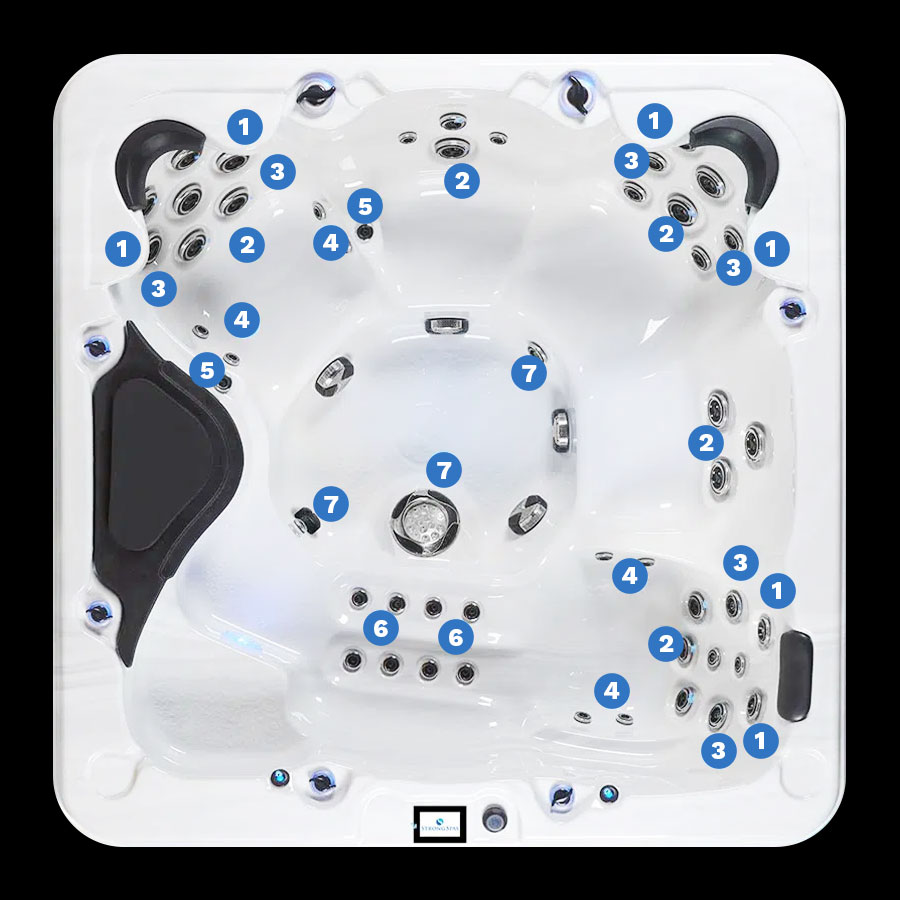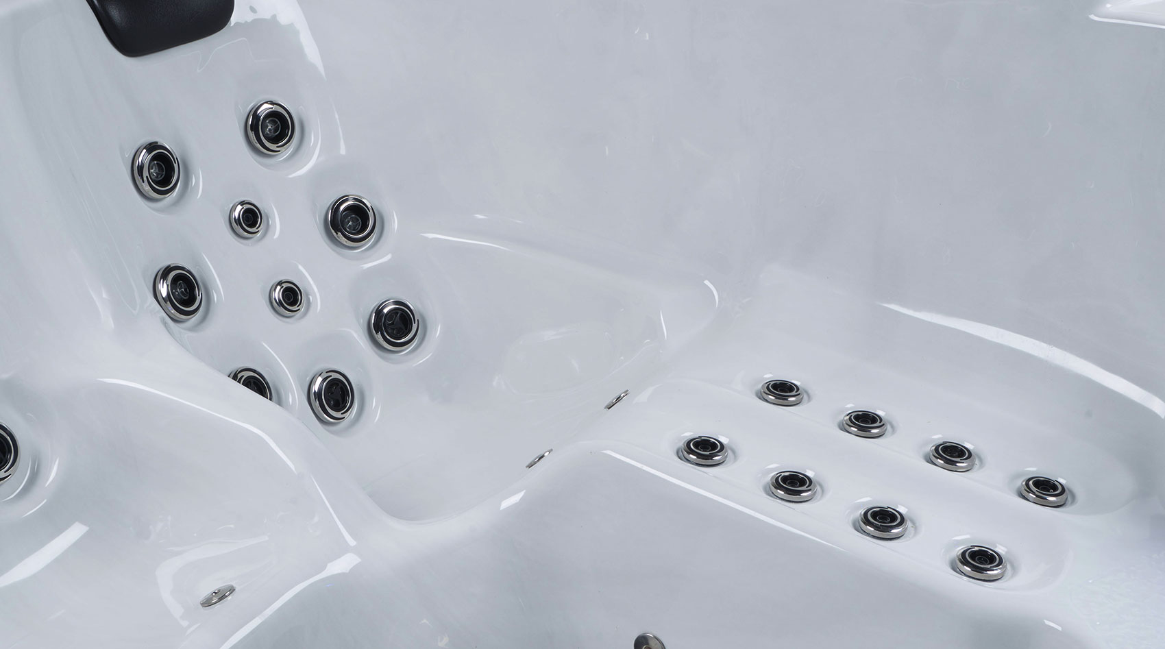 The hydrotherapy system in Strong Spas is thoughtfully designed to target key areas of the body, combining ergonomic seating with powerful, precisely positioned massage jets for maximum comfort and relief.