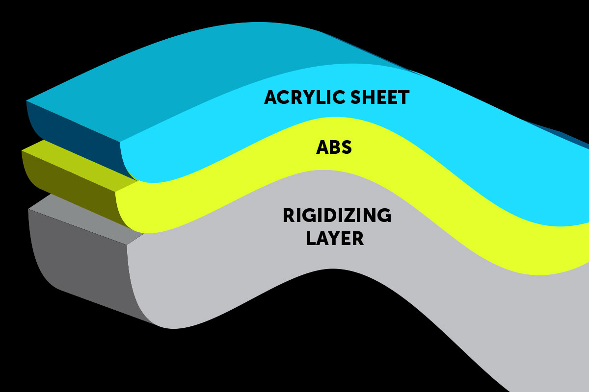 Hot tub shell production begins with a genuine Lucite™ Xtra acrylic sheet, a non-porous material that won’t harbor bacteria. This layer is laminated with a vinylester bonding layer that acts as a vapor barrier. The third hot tub layer is our revolutionary StrongBond® polyurethane component, which has superior strength compared to traditional fiberglass materials.